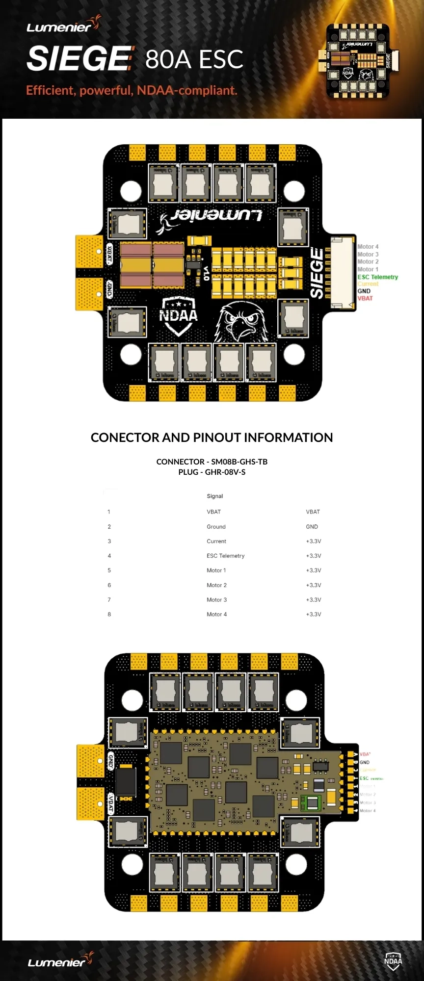 - 1x Lumenier Siege 80A 3-8S AM32 4-in-1 ESC – NDAA