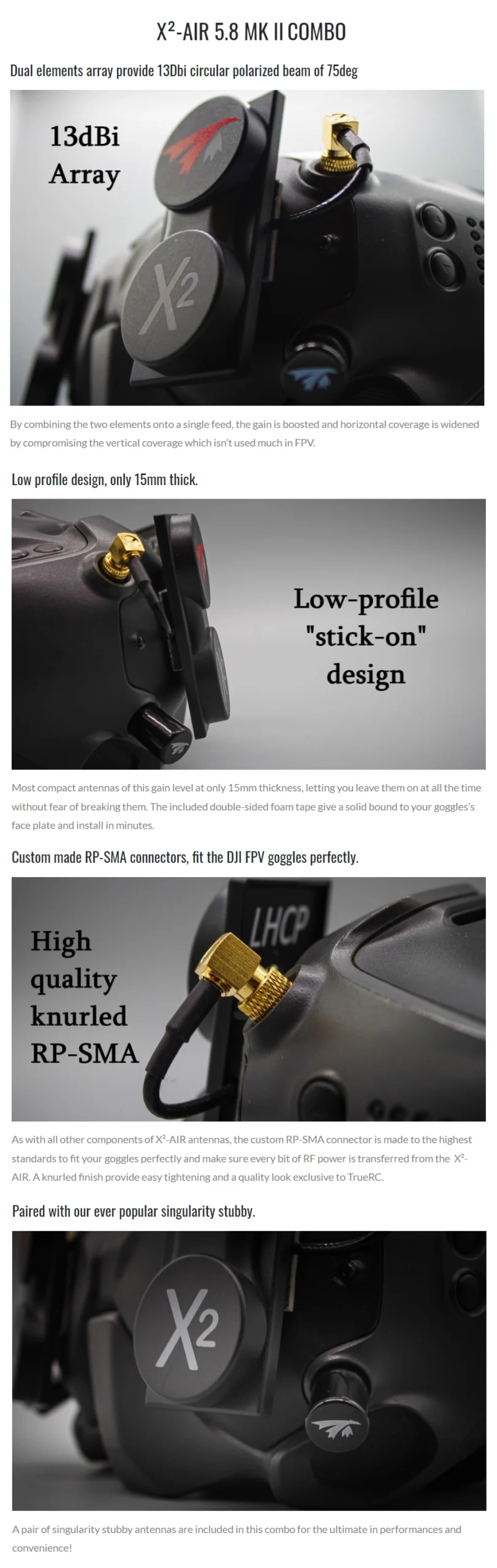 TrueRC X²-AIR 5.8GHz MK II Antenna Combo Kit w/ Singularity Antennas – LHCP